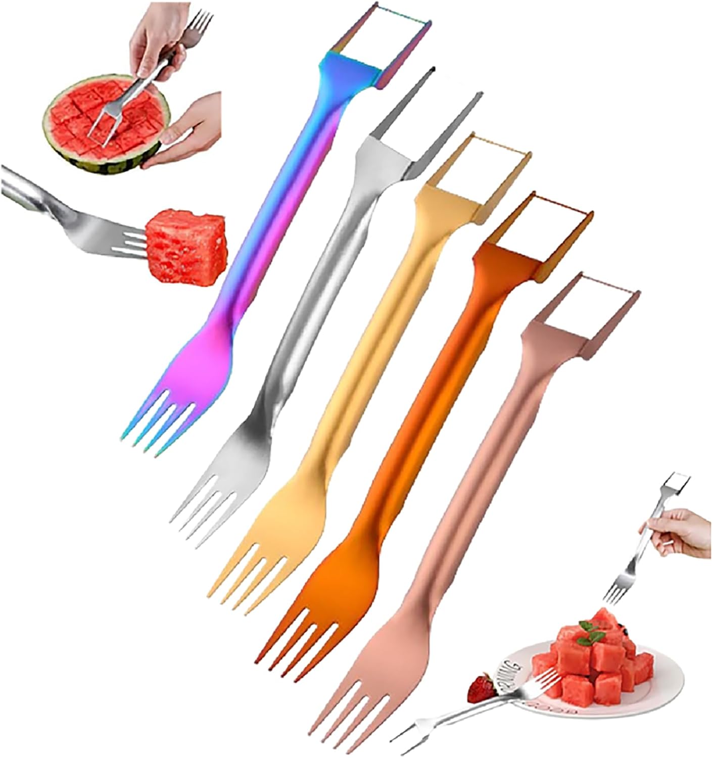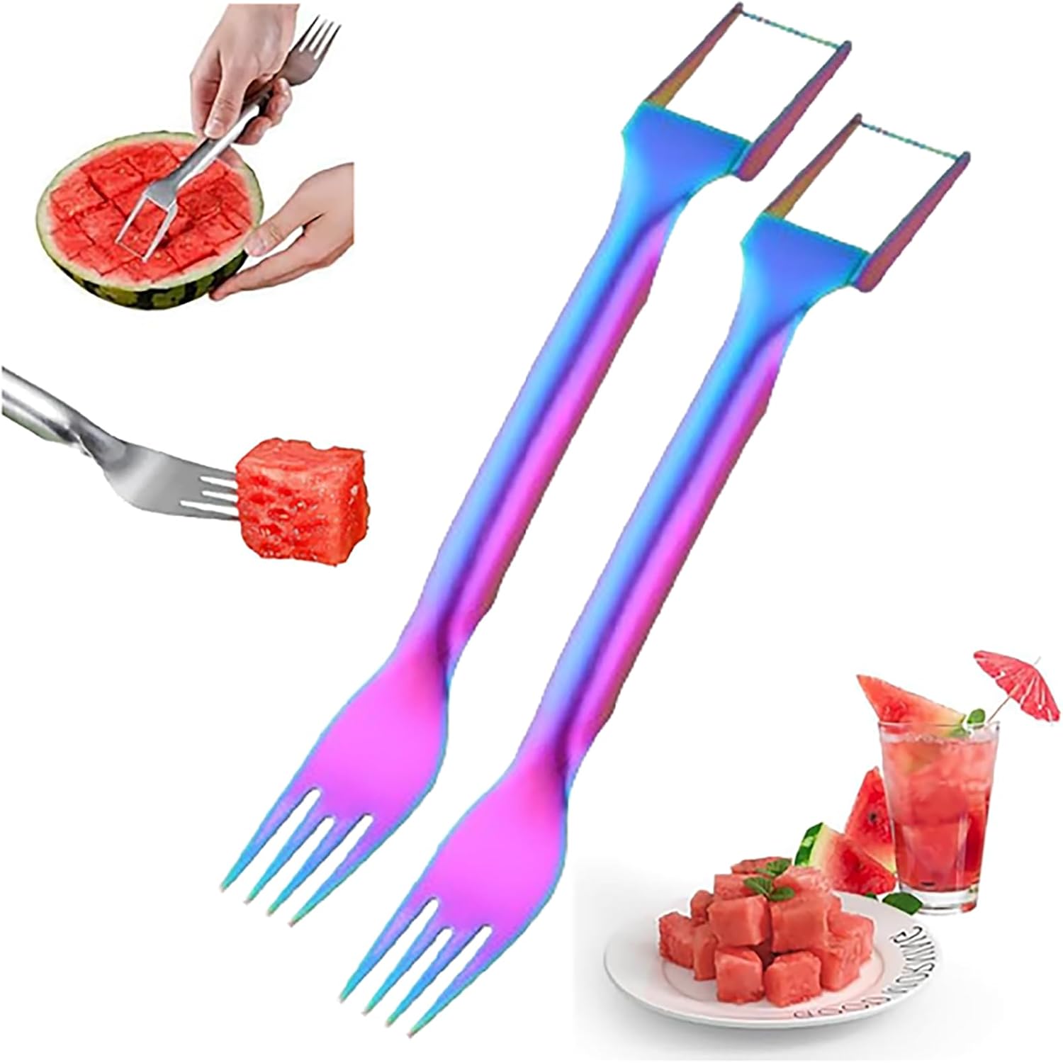 2026 Upgrade Watermelon Fork Slicer Cutter Slicer Tool - 2-in-1 Stainless Steel Fruit Cutter - Dual Head Fruit Forks Slicer Knife,Summer Watermelon Fruit Cutting Fork for Home Camping. Specifications: Weight: about 58g/pc Material: Stainless steel Size: Approximately 26*3.6cm/10.2*1.4inch Package Contains: 1 * 2-in-1 Stainless Steel Fruit Knife/Watermelon slicers and knives OR 2 * 2-in-1 Stainless Steel Fruit Knife/Watermelon slicers and knives OR 3 * 2-in-1 Stainless Steel Fruit Knife/Watermelon slicers and knives OR 5 * 2-in-1 Stainless Steel Fruit Knife/Watermelon slicers and knives Feature: Multi-functional design Easy to operate and store High quality stainless steel Practical and versatile Thoughtful Gift Options