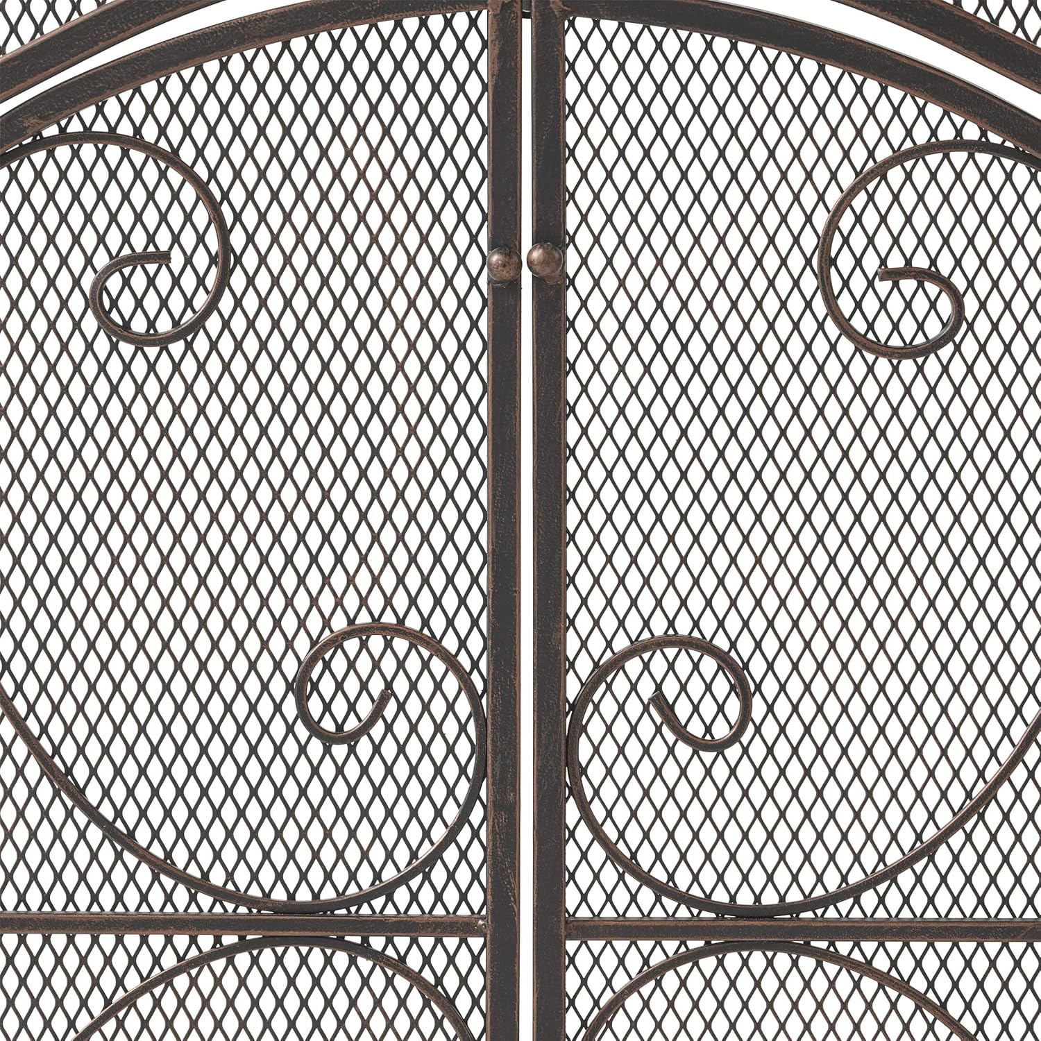 Stay warm on a cold winter evening while giving your interior space a polished accent piece. Our fireplace screen offers a sleek accent to your living room or bedroom while providing protection from hot embers or flying sparks with its fine mesh screen. This screen features two easy access doors, making this extremely convenient to use. With a graceful camelback frame and intricate scrollwork designed panels, this accessory highlights both functionality and style to give your home the best of the best. Includes: One (1) Fire Screen Material: Iron Finish: Black Copper Assembly Required Hand Crafted Details Dimensions: 9. 75 inches deep x 41. 00 inches wide x 31. 75 inches high .
