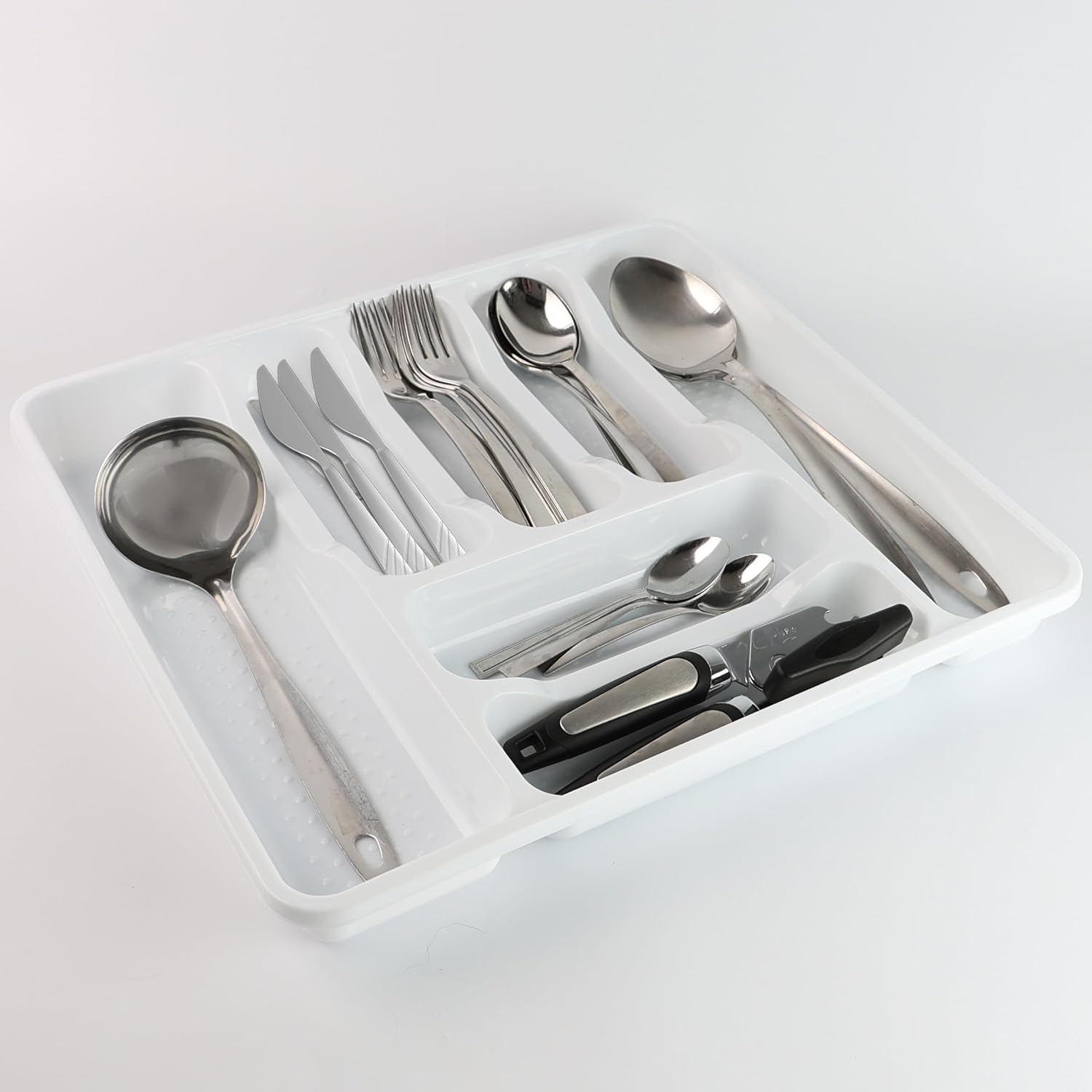 Transform your kitchen with the ultimate organizational solution โ DIVCHI Cutlery Drawer Organiser. This compact and versatile tray is meticulously designed to seamlessly fit into your kitchen drawer, offering efficient storage for all your utensils. With dedicated compartments for knives, forks, spoons, and more, this organiser ensures that everything stays in its designated place. Bid farewell to the hassle of searching for misplaced items! Our cutlery holder features to accommodate any drawer size, making it a perfect fit for your kitchen. Revel in the joy of a clutter-free cooking space and maximize your kitchen storage and organization. The utensil organiser has 7 compartments that holds cutlery in place. The 7-slot tray organiser is not perfect for only kitchen drawer, but also useful for study table drawers to hold pen and pencils, glue, markers etc. This practical cutlery drawer organiser is designed with separated compartments, ensuring that all kitchen cutlery, utensils, or forks fit neatly without appearing messy when you open the drawer. Create a clean and comfortable living space with this kitchen drawer organiser that provides ample storage space. This kitchen drawer organiser can be used as a utensil organiser or silverware holder for drawer tidiness but also offers multi-purpose convenience for storing small items, such as hair ties, safety pins, and more! Enjoy its versatility in keeping your essentials organized. Elevate your kitchen experience today with our Cutlery Drawer Organiser!