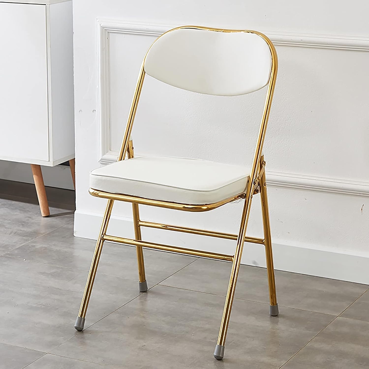 This is a very practical folding chair, suitable for a variety of environments, such as parties, living rooms, gardens, street restaurants, etc. After being folded, it is easy to store and move, and it can also be placed in an inconspicuous corner. The room is still in use. It is very suitable for people who need temporary seats. Specification ++Name:Metal folding chair ++Design: Simple design ++Lumbar and back support design:Ergonomic design makes you have a comfortable sitting experience ++Seat surface and backrest material: The seat surface of the folding chair is widened. Wrapped in leather and filled with sponge, it is soft, flexible and very comfortable. ++Expanded size: 46*38*84cm/18.11*14.96*33.07in, ++Folded size: 46*12*100cm/18.11*14.96*39.37in, ++Maximum load 150KG ++Safety: The metal folding chair has high strength. It adopts triangular mechanical structure support, strong and stable, strengthened beam, safe and reliable, the frame is polished, smooth and does not hurt your hands. ++Adapt to the scene: Suitable for a variety of scenes, do whatever you want, and it is not obtrusive where it is placed. For example, in the study room, living room, dining room, garden, street food stall, etc. ++After-sales service: If you have any questions during use, please contact customer service, we will reply within 24 hours. Thank you very much for your cooperation