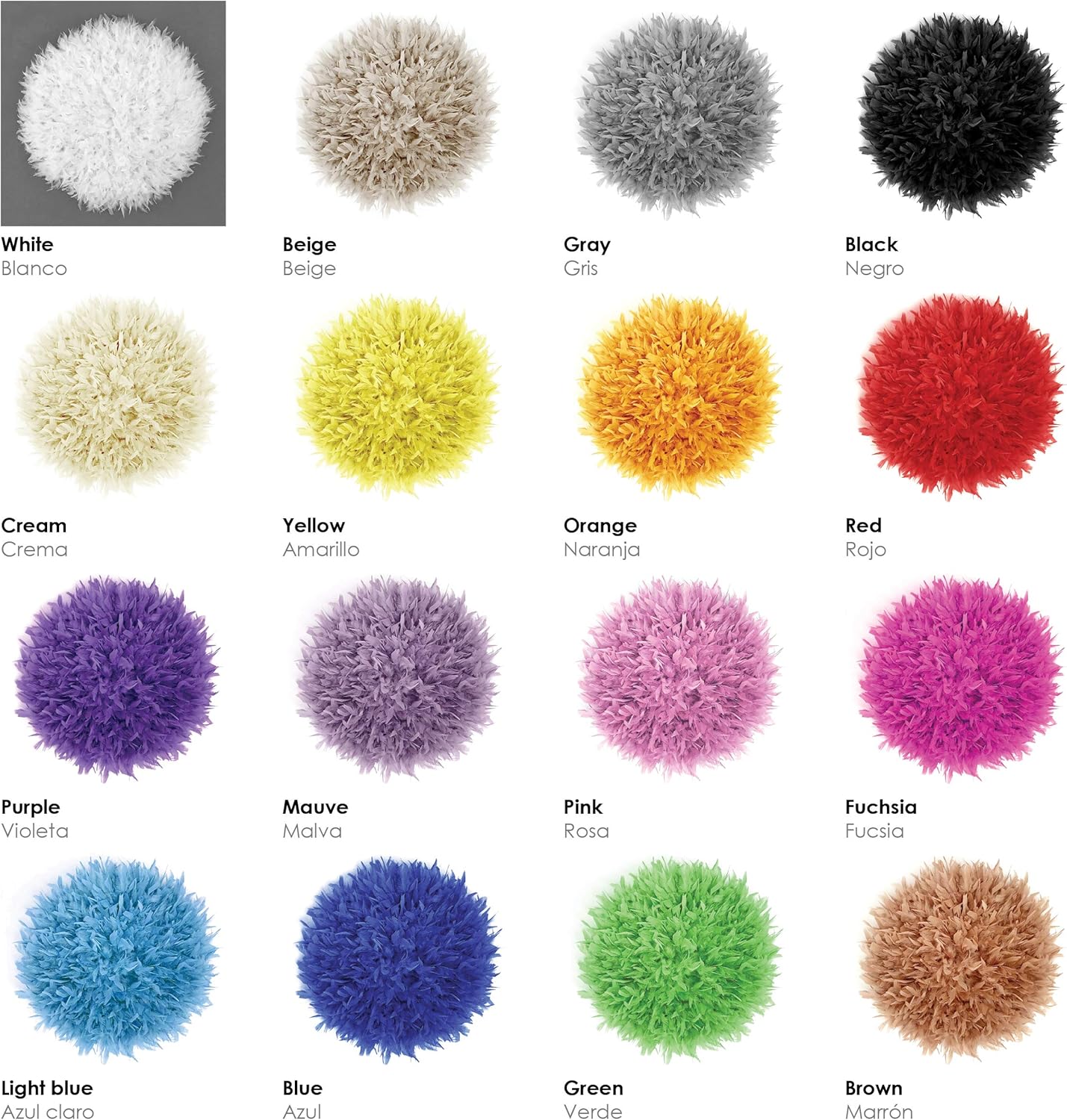 The Juju Hat is a spectacular decorative element that unites tradition and modernity. On a flexible base, we create a network of natural feathers that provides splendor and sophistication to any space. The Juju Hat is the flagship product of Geometirk Design, a light and large decorative element that is inspired by the headdresses worn by the Bamileké tribes of Cameroon. Made from natural feathers placed by hand, in a meticulous and 100% handmade process. Juju Hats are fully customizable. Made with natural feathers and cotton thread. Approximate weight: 1.00 kg.
