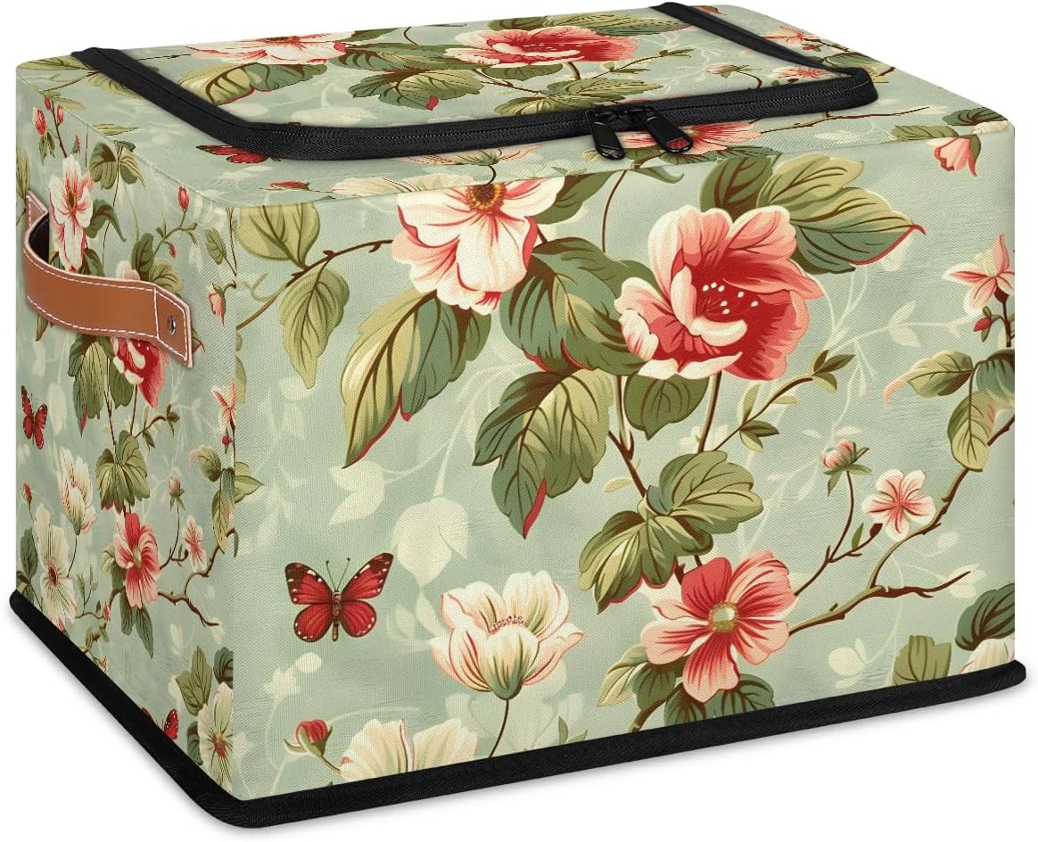 Material:Polyester Fabric + Leather Handles + Stainless Steel Zipper PullSize:14.2(L) X 10.2(W) X 10(H) inchesPackage:2 X Foldable Clothing Storage Bins with zipper Lids and leather handleZipper Lid DesignDouble zipper design of storage basket for shelves is conveniently easy to open and close, cover and protect stored items, preventing dust from entering, prevents things from being spilled when you pick them up, effectively keeping the items inside clean and tidy.Stackable DesignThe interior of foldable storage cubes is supported by 2 strong steel frames around it, easily assembled and stacked, improve the stability and ensuring it does not deform easily. Storage organizer boxes with active wire frame, can be folded flat, when not in use, simply fold down the metal frame, saving space.Multiple OccasionsCollapsible storage containers provide ample space for towels, blankets, books, toys, magazines, office supplies and more. Clothes organizer bins for storage is ideal for organizing places such as car, college dorm, office, coatroom, camper, game room, nurseries, apartment, dormitory, hotel use, basement, laundry room and utility rooms.