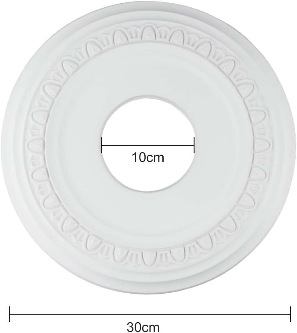 Product description Features:*Sturdy Material:This ceiling medallion is made of PU material, which ensures its durability and longevity. It is and moisture-proof, making it resistant to aging and deformation.*Versatile Size: With an outside diameter of 30cm, inside diameter of 10cm, and thick-ness of 3cm, this medallion is suitable for most sizes of lamps. It provides a and enhances the aesthetics of your ceiling fixtures.*Exquisite Craftsmanship: The medallion features exquisite workmanship, with a smooth item and elegant design. It adds a touch of sophistication and charm to your lamps, creating a visually appealing focal point in any room.*Easy Installation: Installing this ceiling medallion is simple and hassle-free. It comes with all the necessary accessories, and the easy-to-follow instructions make the installation process quick and convenient.*Home Decor:Whether you have ceiling lights, chandeliers, or ceiling fans, this decorative medallion is perfect to elevate and enhance your home decor. It adds a stylish and decorative touch to your light fixtures, transforming the look and feel of any room.Specifications:*Product Name:Light Fixtures Covers Plate*Material:PU*Size:About 30*10*3 cm(Outside diameter*Inside diameter*Thick-ness)*Color:WhitePackage Content:1 * Light Fixtures Covers Plate Manufacturer Contact Information no